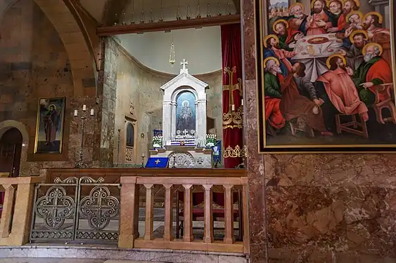 From 1971-76, the interior look of the church was significantly improved. On the eastern part of the church, a gallery was added for the church choir. As a result of such additions, it was found necessary to remove the old dome and the old drum and to replace them by a much higher dome with polyhedral fan-shaped spire. The construction of the bell tower of the St Sarkis Vicarial Church was completed in 2000.[2]