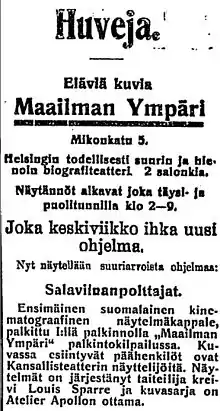 ![]() Advertisement for the film, published in the 31 May 1907 issue of Helsingin Sanomat.[1] | |