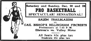 An advertisement for two Trailblazers games from the December 24, 1946 edition of The Oregon Statesman.
