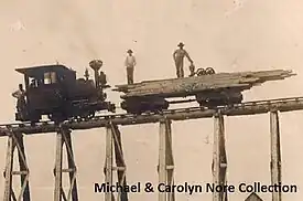 James Paul (Jim) Walsh, Jr. (born on 21 October 1930 in Inglewood, California; died 10. June 2018) was executive vice president of the J-V Corporation. He was interested in anything related to railroads and built, after he had moved to Golden Valley, Nevada a model railroad layout of the Feather River Route.[2] He owned a collection of three narrow gauge steam locomotives, which he had imported from Alaska, to save them from being scrapped. For these he built a locomotive shed and a short piece of track in Fallon.