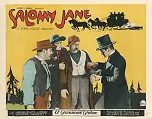 Salomy Jane is a lost[1] 1923 American silent Western film directed by George Melford, and written by Paul Armstrong, Bret Harte, and Waldemar Young. The film stars Jacqueline Logan, George Fawcett, Maurice "Lefty" Flynn, William B. Davidson, Charles Stanton Ogle, Billy Quirk, and G. Raymond Nye. The film was released on August 26, 1923, by Paramount Pictures.[2][3] It is a remake of the 1914 film of the same name.