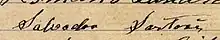 His family left Vicenza when Sartori was still young, possibly because of the political, social, and military unrest of that time.[11] From the Napoleonic invasion in 1797, the commune spent a long period afflicted by war, popular revolts, and tyrannical governments.[12] By 1832, the family was already established in the commune of Cornuda, province of Treviso.[11] In 1854, Sartori married Angela Zancaner, who would give him eleven children: Ludovico, Lino, Amalia, Carolina, Maria, Luigi, Alberto, Massimo, Guerino, Settimo, and Attilio, who was born in Brazil.[2] According to memories preserved by his great-grandson Ludovico Beretta Sartori, Salvador was a partner in a contractor specializing in road construction, but for some reason, his partner in the business came into conflict with the Cornuda authorities, damaging his interests. Faced with an adverse situation and seduced by a misleading propaganda of the Italian colonization agents in Brazil, who promised him great facilities in the New World, he sold all his assets and investments, which were still significant, and decided to seek a new life in America.[11]
