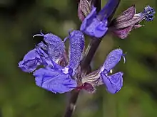 Salvia amplexicaulis (Macedonian clary) is a herbaceous perennial that is native to southeastern Europe. It is a close relative of Salvia nemorosa. Its specific epithet, amplexicaulis, refers to the "stem-clasping" stem leaves which have no stalks. Violet-blue flowers grow closely together in whorls, forming a nearly continuous spike, with plants reaching up to 90 cm (3.0 ft) tall.[1]