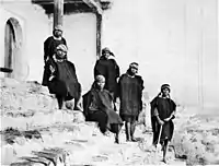 Men from San Antonio Palopó in 1895; due to their reluctance to have their picture taken, Maudslay and his wife had to beg this group to have the picture made.[10]