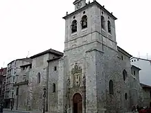 Iglesia de San Cosme y San Damián is a Catholic parish church in Burgos, Spain, on the left bank of the Arlanzón River. It was built in the sixteenth century with a combination of the Late Gothic and Renaissance styles. It was a burial place of featured artists of the time. The porch on the north side was designed by Juan de Vallejo in 1552, with a triumphal arch with medallions of John the Baptist and John the Evangelist in the spandrels and fine fluted columns. The massive tower of the church, of the classicist baroque style, was added in 1621 by Gabriel de Cotero.[1]