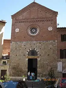 San Donato, also called San Michele al Monte di San Donato, is a Baroque style, Roman Catholic church located on the Piazza on Via dell'Abbadia, Siena, region of Tuscany, Italy. The Monte de Paschi di Siena, whose original offices were in the Palazzo Salimbeni, whose rear facade faces the church, has a Pinacoteca/Museum called San Donato.