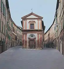 The narrow church or oratory of San Gaetano di Thiene is found in the middle of via dei Pispini in Siena, Italy.
