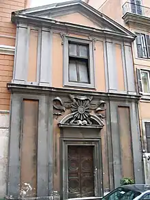 Around 1592 Pope Clement VIII purchased the palace of Florentine Cosmo in order to build the church of S.Andrea e S.Margherita regina. It was constructed for the Scottish expatriate community in Rome, especially for those intended for priesthood.[2] It served as the chapel for the Pontificio Collegio Scozzese which relocated from a small house on the Via del Tritone.[3]