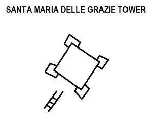 Santa Maria delle Grazie Tower only cost 4948 scudi to build, which was less than the cost of the other towers. This implies that it was smaller,[3] however, it was the most heavily armed of the towers. Some weapons were therefore possibly deployed outside the tower (even though it had no external battery like some of the other towers).[4]