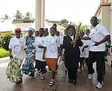 Former Deputy Governor, Lagos State, Princess Sarah Adebisi Sosan runs with the Queen's Baton in 2010.