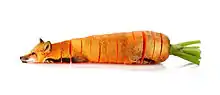 Her first major photo-manipulation project, "Animal Food", was featured on sites and in papers such as The Guardian,[13] TIME,[14] VICE Creators Project,[15] and Mashable.[16] It also appeared on multiple art blogs such as Design Taxi,[17] Toxel[18] Lost at E Minor,[19] Acclaim Mag,[20] and the Creative Review.[21] This project features the unlikely combination of images of animals with sliced up fruit and vegetables. In an interview, she stated that she "noticed the potential for a series stemming from an interesting juxtaposition between live animals and produce, rather than just different animal species. I found the combination of forms interesting and realized that it made a visually strong image that people would have strong opinions about. A lot of the project was a study in color and negative space, as well as creating a cohesive image through hybridizing, but I also just enjoyed creating something both amusing and potentially thought provoking." When questioned as to whether or not the series was created as a statement on meat consumption, she noted that she "didn’t specifically create the series to be commentary on meat eating or vegetarianism. I have always enjoyed making pieces that were visually strong on their own, but also thought provoking and open to interpretation. I never create art to force my own view, but use it to inspire people to think about their own. Some have gone as far as to refer to "Animal Food" as "Photoshopped fruit-animals that make meat vegan-friendly", while others have simply called it "disturbing". I’m just happy to inspire discussion of any sort."[22] DeRemer was also interviewed about the project on TBS eFM,[23] an English radio station in Seoul. In 2016, an article by VICE Creators Project, entitled "Dalí, Warhol, and the Lip-Smacking Legacy of Artists and Food", stated that "Sarah DeRemer's series of critter-produce photo manipulations, Animal Food, offers viewers insight in blending the dichotomy between the flora and fauna we consume.".[24]