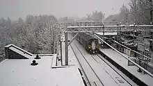 Sawbridgeworth railway station is on the West Anglia Main Line serving the town of Sawbridgeworth in Hertfordshire, England. It is 26 miles 57 chains (43.0 km) down the line from London Liverpool Street and is situated between Harlow Mill and Bishop's Stortford stations. Its three-letter station code is SAW.