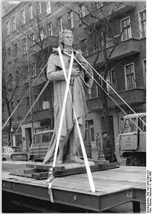 During the Third Reich Gendarmenmarkt was turned into a parade ground in 1936. The decorative gardening was removed, the Schiller monument dismantled and put into storage. There is a bronze copy in the southern part of Schiller Park in the Berlin locality of Wedding. The metal used was from a memorial fountain for Emil and Walther Rathenau, originally erected in 1930 in a large public park, Volkspark Rehberge, but removed from this location by the Nazis in 1934 for ideological reasons and melted down in 1941. The marble original of the Schiller statue was placed in Lietsensee Park, which was in one of the Western sectors into which the city was divided after World War II. The monument's heavily damaged allegorical figures were stored in Friedrichsfelde zoo in East Berlin. An East-West cultural agreement of 6 May 1986 was the precondition for reuniting all the surviving parts in East Berlin. In 1988 the partially reconstructed and partially restored monument was rebuilt at its original location on Gendarmenmarkt.