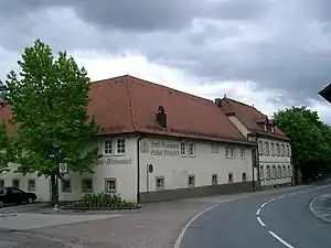 The manor has, throughout the years, served as a private home to various nobles, including the Counts of Katzellenbogen and the Lords of Gemmingen. The manor's first documented mention is in the year 1390. The manor as it is today was built in 1753 by the Lords of Gemmingen-Hornberg, probably on the ruin of a castle that was destroyed during the Thirty Years' War.[1]