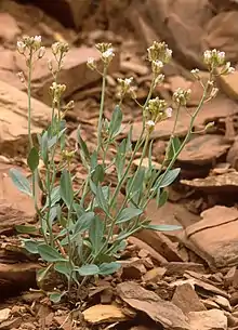 Schoenocrambe barnebyi (syn. Hesperidanthus barnebyi) is a rare species of flowering plant in the mustard family known by the common names Barneby reed-mustard, Syes Butte plainsmustard, and Barneby thelypody. It is endemic to Utah in the United States, where it is known only from Emery and Wayne Counties.[1] It is threatened by habitat degradation and destruction. It is federally listed as an endangered species of the United States.