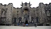 Proposals for a Scottish National War Memorial were put forward in 1917, during the First World War, by John Stewart-Murray, 8th Duke of Atholl, and Captain George Swinton of Kimmerghame. Sir Robert Lorimer, the architect of the Order of the Thistle's Thistle Chapel in St Giles' Cathedral[1] and one of the architects involved in the Imperial War Graves Commission,[3] was appointed in 1919, but opposition to a large-scale monument arose from the Cockburn Association and others concerned with the castle's heritage. A more modest scheme to remodel the North Barrack Block was finally agreed in 1923, and the memorial was formally opened on 14 July 1927 by the Prince of Wales (later Edward VIII).[4] After the Second World War, 50,000 names were added to the rolls of honour. Names continue to be added from successive conflicts, though the memorial itself has been left unchanged.[4]