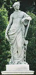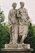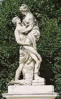 | 4 | Ceres and Dionysus | Joachim Günther | Ceres was the goddess of agriculture, marriage, and death, representing the generative power of nature.[7] She is shown with Dionysus, the god of the grape harvest, winemaking, and wine, and of ecstasy. He was the son of Zeus and Semele.[8] | ![]() |