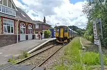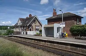 The station is on an alignment of approximately 160 degrees, curving towards the south.[1] There is a single 118-yard (108 m)-long platform which serves trains in both directions, situated on the east side of the track.[5] The station's western platform was abandoned in 1970 and is overgrown. A user-worked level crossing at the north end of the station allows vehicles and pedestrians to cross the railway, alternatively pedestrians may cross the line using a footpath which goes under the bridge over the River Trym.[6]