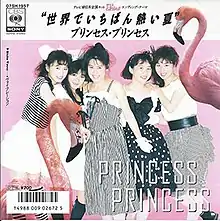 "Sekai de Ichiban Atsui Natsu" (世界でいちばん熱い夏, lit. "The Hottest Summer in the World") is the second single by Japanese band Princess Princess. Written by Kyōko Tomita and Kaori Okui, the single was released by CBS Sony on July 16, 1987. It was re-released on July 1, 1989 as the band's eighth single, which became their second of five consecutive No. 1 singles on Oricon's singles chart.