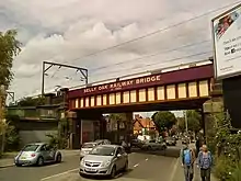 The bridge over the Bristol Road was replaced in 1931 by the L.M.S. The new bridge weighed about 200 long tons (200,000 kg), with the two side girders alone weighing 35 long tons (36,000 kg) each.[8]