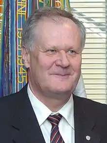 Seppo Arimo Kääriäinen (born 29 March 1948 in Iisalmen maalaiskunta) is a Finnish politician of the Centre Party[1] and Doctor in Social Sciences. He served as the Minister of Defence of Finland[2] between from 24 June 2003 to 19 April 2007.[3] He has been MP since 1987 and was Minister of Trade and Industry and Minister at the Ministry of Foreign Affairs in 1993–1995.[4] He also served as the First Deputy Speaker of the Parliament of Finland.[5]