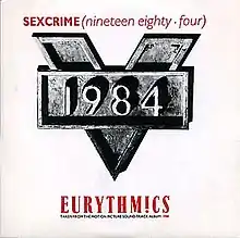 "Sexcrime (Nineteen Eighty-Four)" is a song written and performed by the British duo Eurythmics. It was released as the first single from their album 1984 (For the Love of Big Brother), which served as the soundtrack to the film Nineteen Eighty-Four, an adaptation of the novel of the same name by George Orwell. The song was produced by Dave Stewart.