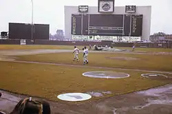 During the 1977 New York City blackout the stadium was plunged into darkness at approximately 9:30 p.m. during a game between the Mets and the Chicago Cubs. It occurred during the bottom of the sixth inning, with the Mets trailing the Cubs 2–1 and Lenny Randle at bat. Jane Jarvis, Shea's organist (affectionately known as Shea's "Queen of Melody") played "Jingle Bells" and "White Christmas".[50] The game was eventually completed on September 16, with the Cubs defeating the Mets 5–2.[51]