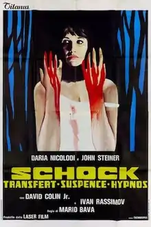 Shock (Italian: Schock) is a 1977 Italian supernatural horror film directed by Mario Bava and starring Daria Nicolodi, John Steiner, and David Colin, Jr. Its plot focuses on a woman who moves into the home she shared with her deceased former husband, where she finds herself tormented by supernatural occurrences. It was Bava's last theatrical feature before he died of a heart attack in 1980.