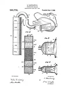 - ↑ US patent 923776, Danielewicz, Sigismund, "Filtrative inhaler", issued 1909-06-01