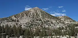 Silver Peak is an 11,878-foot-elevation (3,620 meter) mountain summit located in the Sierra Nevada mountain range in Fresno County, California, United States.[1] It is set in the John Muir Wilderness, on land managed by Sierra National Forest. Silver Peak ranks as the 455th-highest summit in California,[4] and topographic relief is significant as the east aspect rises nearly 2,300 feet (700 meters) above Beetlebug Lake in approximately one mile. It is six miles (9.7 km) north of Lake Thomas A Edison, and approximately 12 miles (19 km) south of the community of Mammoth Lakes. The peak is situated on Silver Divide, two miles northwest of Graveyard Peak. The first ascent of the summit was made prior to 1937 by an unknown party.[5] Inclusion on the Sierra Peaks Section peakbagging list generates climbing interest.
