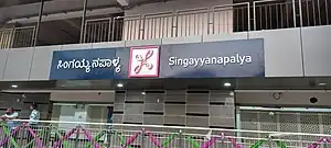 Singayyanapalya (formerly known as Mahadevapura) is an elevated metro station on the East-West corridor of the Purple Line of Namma Metro in Bengaluru, India. Around this station, holds the Hindustan Petroleum Corporation Ltd. followed by some locations like Phoenix Marketcity, VR Bengaluru, Exxonmobil Lubricants Pvt. Ltd., DTDC office and many more.[1][2][3]