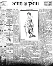The case against Griffith was weak but the judge found him far "too saucy in his attitude"[2] and ordered him to pay £50 in damages to the priest and £253 3s. 9d. for court costs.[3] At this stage the company was already in financial straits and the board of directors did not have the necessary £300. Griffith and the Board had, however, anticipated such an outcome and when the court-appointed bailiffs called on the Fownes Street office of the United Irishman Ltd. to collect the money, they discovered that the company had just gone into liquidation and seized the only assets they could find: a table, a few chairs and some manuscripts.[4] Griffith took advantage of the court case to make a new start with what he hoped would be a more financially viable company, less dependent on funds from the Irish Republican Brotherhood (IRB) in the British Isles and Clan na Gael in the United States,[5] both of which had been behind the setting up of the United Irishman in 1899.