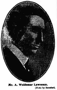 - ↑ Lawrence, Sir Alexander Waldemar, (18 May 1874–1 Sept. 1939), late Chief Assistant Solicitor to the Treasury. WHO'S WHO & WHO WAS WHO. Ed. Retrieved 23 Jan. 2019, from http://www.ukwhoswho.com/view/10.1093/ww/9780199540891.001.0001/ww-9780199540884-e-212645.