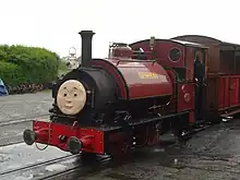 The Corris Railway was a 2 ft 3 in (686 mm) gauge tramway built in 1859, which ran from Machynlleth north to Corris and on to Aberllefenni to serve local slate quarries. Originally, the line was horse-drawn, but three identical 0-4-0ST locomotives, numbered 1 to 3, were ordered from Hughes' in 1878.[2] Between 1883[3] and 1900, the locos were fitted with trailing pony trucks, converting each of them into an 0-4-2ST.[4][5]