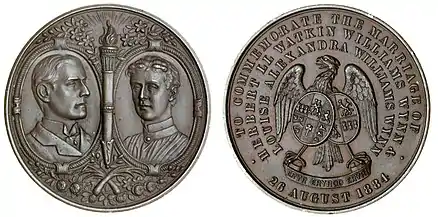 On 26 August 1884 Williams-Wynn married his cousin Louise Alexandra Williams-Wynn (1864–1911), daughter of Sir Watkin Williams-Wynn, 6th Baronet and the sole heiress of the Wynnstay estate. They were divorced in 1898, having had three children:[1]