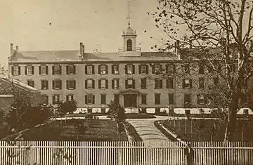 On 3 June 1848,[4] eight Sisters of Charity, Sisters Ursula Mattingly, Ann de Sales Farren, Hieronimo O'Brien, Anacaria Hoey, Clare McDurby, Mary Aloysia Lilly, Mary Eliza Dougherty, and Agatha O'Keefe,[5] arrived in Buffalo.[3] Bishop Timon had purchased an unused brick schoolhouse and adjoining cottage at Pearl Place, which he gave to the Sisters to use.[6] They outfitted it with 100 beds and living quarters for themselves.[3] On 1 October 1848, Sisters of Charity Hospital officially opened as Buffalo's first large healthcare facility, under the leadership of Sister Ursula Mattingly, DC.[4] The first patients were a group of six sailors.