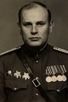 During World War Two, Soviet soldier Lieutenant Anton Ivanovich Skarzhinsky served with the 1st Belorussian front. He served in the Red Army's 130th Rifle Division. He was twice awarded the Soviet Military Merit Medal.[12]
