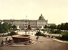 ![]() Machine gun position of the Volksmarinedivision in front of the Neptunbrunnen at the Stadtschloss, November 1918. | |||||||