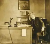 On February 14, 1914, in the flush of enthusiasm following the Denver conference, the Executive Committee held its meeting in Philadelphia, Pennsylvania, in a more elaborate fashion than the usual session and included a banquet.[71] In October 1914, Dennison Wheelock hosted the Society's annual October convention in Madison, Wisconsin.[72] In December 1914, the Society met in Washington, D.C. and received a first-class reception from the federal government. Commissioner Cato Sells welcomed them to the nation's capital where they toured the Bureau of Indian Affairs, and visited the White House to meet with President Woodrow Wilson. After shaking hands with the president, Wheelock presented the Society's petition in support of the Carter Bill and Stephens Bill.[73] Wheelock spoke, "We believe that you feel, with the progressive members of your race, that it is anomalous permanently to conserve within the nation groups of people whose civic condition by legislation is different from the normal standard of American life." While President Wilson was impressed, both bills garnered little political traction in Washington. Arthur C. Parker noted the political aversion to Indian rights legislation when he observed that "one senator wrote me that there was a great deal of prejudice in considering Indian matters and reluctance to take them up."[74]
