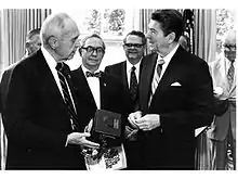 Sol J. Paul meeting with Ronald Reagan at the White House