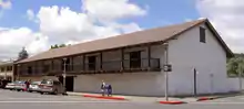 The Sonoma Barracks (El Cuartel de Sonoma) is a two-story, wide-balconied, adobe building facing the central plaza of the City of Sonoma, California.[5] It was built by order of Lieutenant (Teniente) Mariano Guadalupe Vallejo to house the Mexican soldiers that had been transferred from the Presidio of San Francisco in 1835 as part of the secularization of the Mission. The Presidial Company and its commander, Lieutenant Vallejo, were also responsible for controlling the Native Americans living on the northern border of Mexican California.