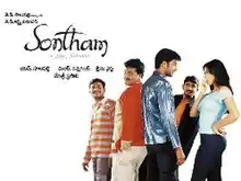 Sontham (transl.Belonging) is a 2002 Indian Telugu-language romantic comedy film was released on 23 August 2002. It was directed by Srinu Vaitla. The film stars Aryan Rajesh, Namitha, Rohit, Sunil and Neha Pendse. Devi Sri Prasad has composed the score.