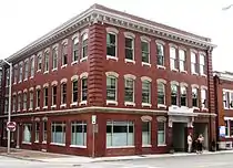 • The Cunningham Building (707 Market Street), originally called the "Keystone Building," a three-story Renaissance Revival-style brick building constructed in late 1907. The building is characterized by its marble trim, Tennessee "pink" marble voussoirs, and a segmented arched entrance.[1] The Cunningham currently houses law offices for Market Street attorneys on the first floor. There are residential condominiums on its upper floors and on the basement level. In the early years of the 20th century the building housed physicians and multiple coal and mining companies as well as residences. In the 1950s the building housed the City Directory Company and Rotheberger Directory Company on the second floor. In the 1960s the National Outboarding Association operated out of the second floor.