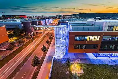 One of the SIC buildings: biotechnology incubator SIC INBIT in university campus in Brno Bohunice