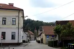 The oldest settlement core of Spodnja Šiška lies between Milan Majcen Street (Slovene: Ulica Milana Majcna, formerly Saint Bartholomew Street, Svetega Jerneja cesta) and Fire Station Street (Gasilska cesta). The houses in this area had long strips of land in a north-south direction. In 1382, a peace treaty between the Republic of Venice and Leopold III of Habsburg was signed in front of St. Bartholomew's Church in Spodnja Šiška, whereby the Austrians agreed to return the city of Trieste.[5] Spodnja Šiška was annexed by the City of Ljubljana in 1914, ending its existence as an independent settlement.[6]
