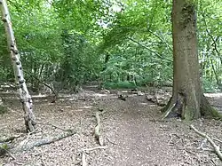 This ancient oak and hornbeam wood has an understorey of hazel. There are small-leaved limes in groups several metres in diameter, which are genetically one tree, as a result of coppicing decades ago.[1][3]