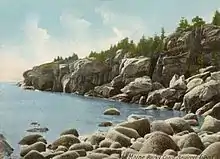 Farmers and shepherds have resided on Squirrel Island since the American Revolution.[1] The summer colony was created with the formation of the Squirrel Island Association in 1871, and the subsequent establishment of a village corporation within the town of Southport, the first of a handful of communities so governed in the state of Maine, in 1903.[2] The "village corporation" adds an additional layer of control within the town government to meet the island's unique needs that arise from the fact that most island residents are not year-round residents of Southport and therefore have no right to vote in local elections.[2] Residents of Squirrel Island pay taxes to Southport, a portion of which is rebated for expenditure on the island, and an additional tax that is locally controlled and spent.