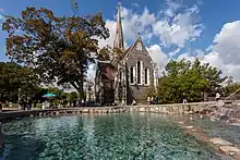 St. Alban's Church, locally often referred to simply as the English Church, is an Anglican church in Copenhagen, Denmark. It was built from 1885 to 1887 for the benefit of the growing English congregation in the city. Designed by Arthur Blomfield as a traditional English parish church in the Gothic Revival style, it is in a peaceful park setting at the end of Amaliegade in the northern part of the city centre, next to the citadel Kastellet and the Gefion Fountain and Langelinie.