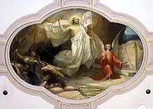 The church ceiling is decorated with frescos depicting the life of Christ and a scene in Heaven.