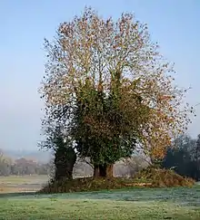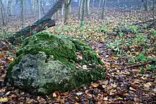 A newspaper article from 1939[7] records a tradition concerning the chapel. It was said that it was founded for the nuns to pray for the souls of those killed in a battle between the Danes and King Edmund's Anglo-Saxons which may have occurred near to the site of the chapel.[8] The Grove, an area of woodland, which appears on maps from the 18th century as King's Grove, lies to the south of the chapel. An "ancient" hollow way runs through the wood connecting the hamlet of Collen's Green to the road.[8][9] A boulder known as the Great Stone of Lyng – a glacial erratic of conglomerate stone, left in the moraine of a retreating glacier - lies alongside the track. The stone is about 2 metres long by 1 metre wide and has been associated in folklore with "druids, devils, sounds, the stone moving or growing, burials and treasure" as well as the stone bleeding "if pricked with a pin".[8][10][11]